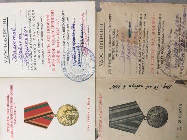 Участвовал в войне с Японией до 3 сентября 1945 года.