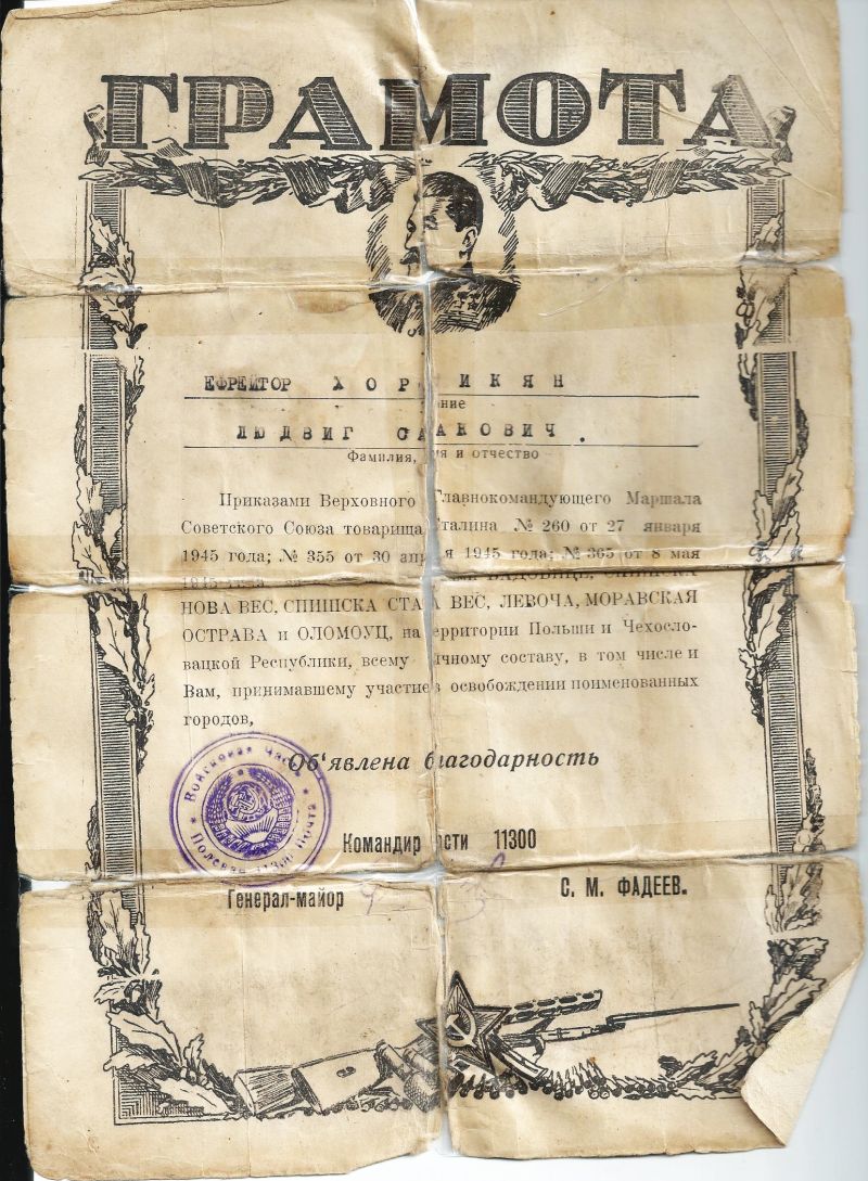 Наш прадедушка Хоршикян Людвик Саакович! Наша гордость, наш герой!