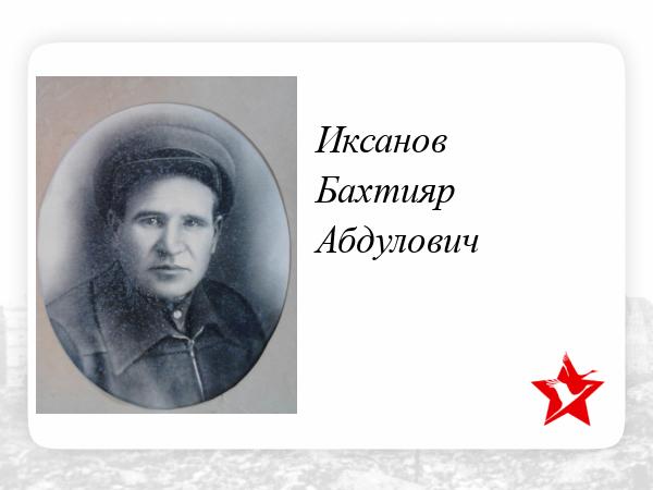 Ушел на фронт 23 июня в 6 часов утра 1941 года, служил в разведке в Оренбургском военно-полевом госпитале. После боя они разведовали территорию, и искали место где разбить полевой госпиталь. Дошел до Берлина. Вернулся домой в августе 1945 года вместе с госпиталем.