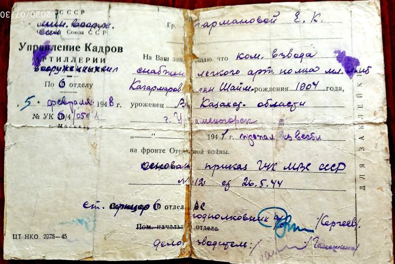 Кагарманов АбсаНям ШЕймАрданович __ Память народа Учетно-послужная картотека