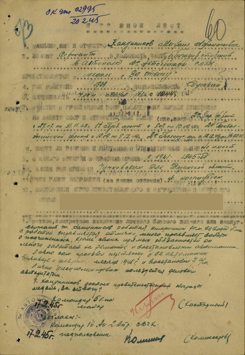 Товарищ Канунников достоин правительственной награды - медали «За отвагу».
