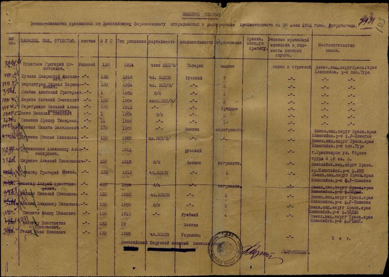 Каплин Владимир Николаевич, 1905г.р Место рождения Иркутская область, д.Котина.До войны жил в Красноярском крае, ЭНО, Илимпийский район, ф.Нидым.Призван Эвенкийским ОВК в 1942году. Красноармеец. Линейный надсмотрщик. В/ч 1000 окшр.,906 обс 46 ск 65 А.Награжден медалью За боевые заслуги, медалью За отвагу, орденом Отечественной войны 2 степени (посмертно) Убит в бою 21.03.1945.Похоронен в Польше,Гданьское воев.,пов.Картузский,г.Цукау,северная окраина, кладбище. Жена Каплина Анна Михайловна.