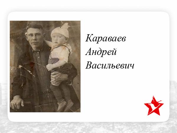 Караваевв Андрей Васильевич 1905 года рождения, был призван на фронт в августе 1941г. из Челябинска. Был водителем. Подорвался на мине под Сталинградом в 1942году.