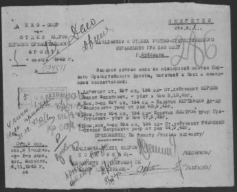 26 сентября 1943 года 184 стрелковая Духовщинская дивизия была выведена из состава 2 гвардейского стрелкового корпуса и приказом командующего Калининским фронтом включена в состав 84 стрелкового корпуса 39 армии. Продолжая преследовать противника, части дивизии форсировали реку Клец и вышли в район деревень Мамошки , Прудники, Рябики Смоленского района Смоленской области. На этом рубеже гитлеровцы создали прочную оборону с железобетонными, деревоземляными огневыми точками и траншеями полного профиля. Они предпринимали неоднократные контратаки пехоты с танками при поддержке авиации и шквальных артиллерийских налетов, но успеха не имели. Дивизия прочно закрепилась на достигнутом рубеже. С 14 по 30 сентября 184 стрелковая дивизия в условиях бездорожья прошла с боями более 150 км и освободила 130 населенных пунктов. В полосе наступления дивизии враг понес большие потери. Было уничтожено свыше 5000 солдат и офицеров, 125 пулеметов, 21 орудие, 20 минометов, 36 автомашин, захвачено 40 винтовок, 110 пулеметов, 36 орудий, 12 минометов, 32 автомашины, 42 лошади, 150 велосипедов, 3 склада, взято в плен 57 немецких солдат и офицеров.