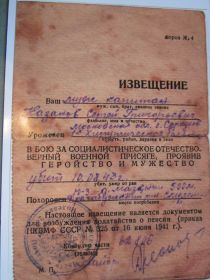 До 1943 года часть, в которой он служил, была в резерве, т.к. обстановка на границе с Японией была очень неспокойной. В январе 1943 года его отправляют под Смоленск, где в это время идут тяженые бои. 10 августа 1943 дед погиб. По словам очевидца, снаряд попал прямо в штабную землянку. Жизнь оборвалась в 32 года.