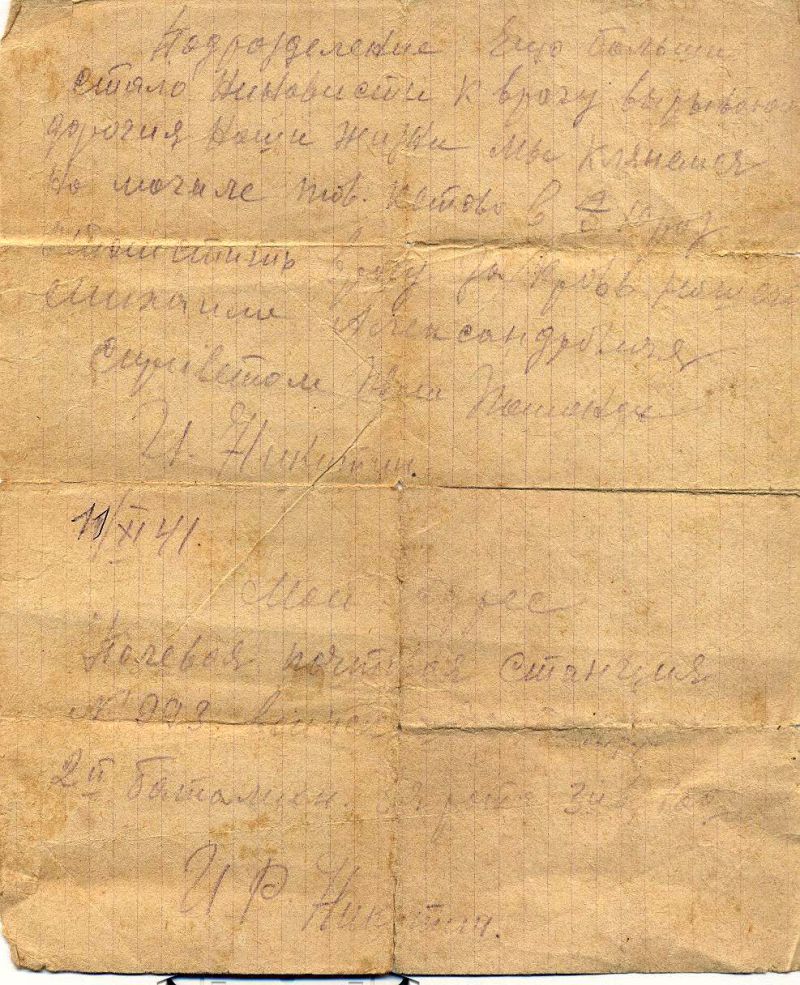 К сожалению, до сих пор мы не получили ответ на наше письмо из Волокаламска о перезахоронении и издании книги памяти "Они погибли в битве под Москвой". Поэтому не имеем возможности съездить на могилу и увидеть эту книгу.