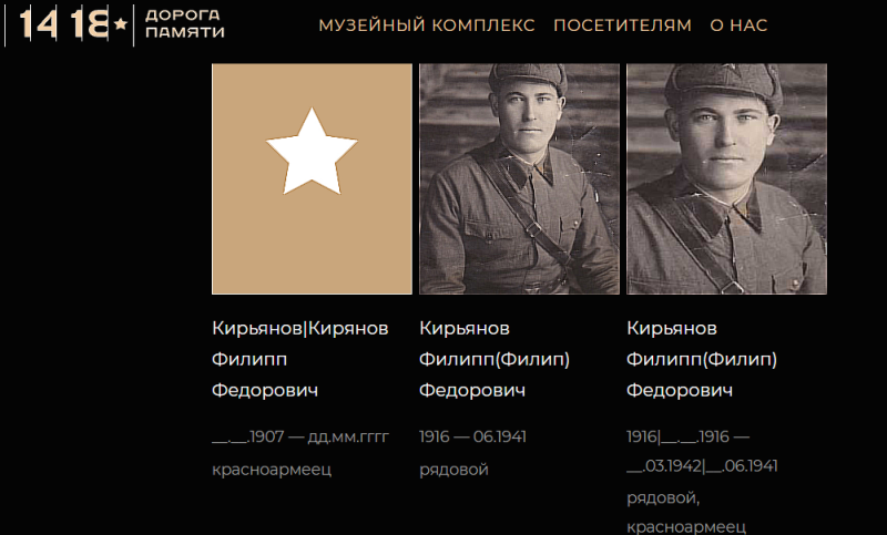 Добрый день! Меня зовут Ирина. На сайте Бессмертный полк, по просьбе моего папы Кирьянова Сергея Павловича 1952г.р, нашла его дядю Кирьянова Филиппа. Информацию о нем, указано- разместили Вы. Получается мой родной дедушка Кирьянов Павел Фёдорович, это родной брат Филиппа, у них ещё был брат Егор и сестра Анна. Мой дед не попал на фронт по возрасту, у него было два сына и дочь, все переехали в Белгородскую область. У их сестры Анны, только одна дочь, Надежда, проживает в Киргизии (Бишкеке). Можете подсказать контакты его детей (внуков)?
