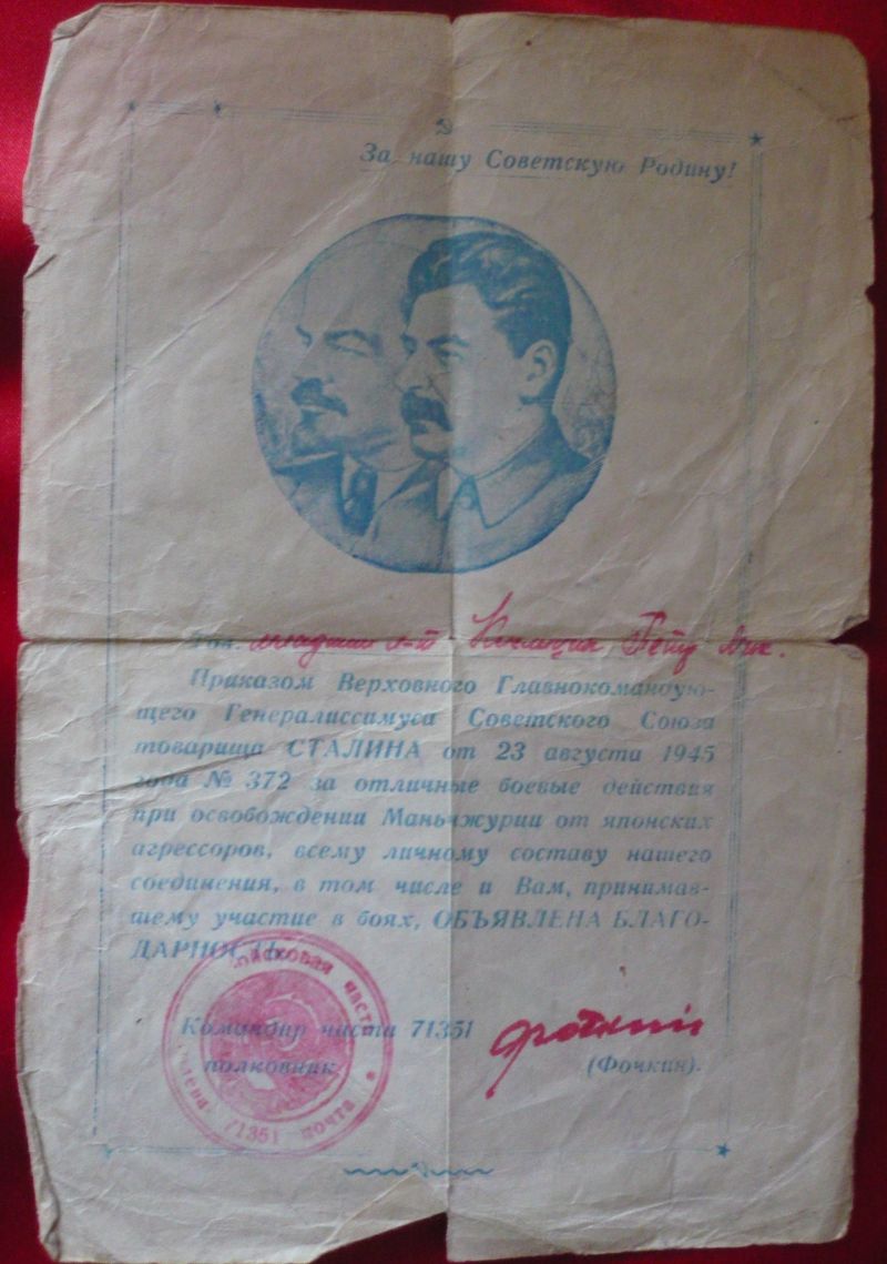 Освобождении Маньчжурии от японских агрессоров