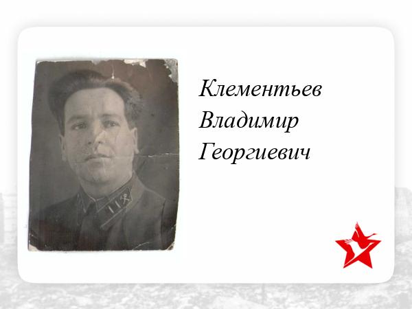 Мой дедушка, Клементьев Владимир Георгиевич, прошёл всю войну. Командовал передвижным ремонтным заводом, чинил автотранспорт.