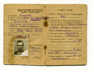 В 1949 году был назначен помощником командира взвода связи 147-го отдельного батальона и ему было присвоено звание младшего сержанта.