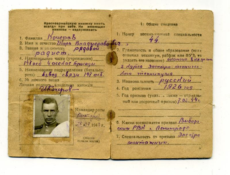 _Мой дед, Кочеров Игорь Владиславович, родился 19 июня 1926 года в городе Талдом (Ленинске), Московской области в семье служащего. Семья приехала туда на отдых к родным из Ленинграда.