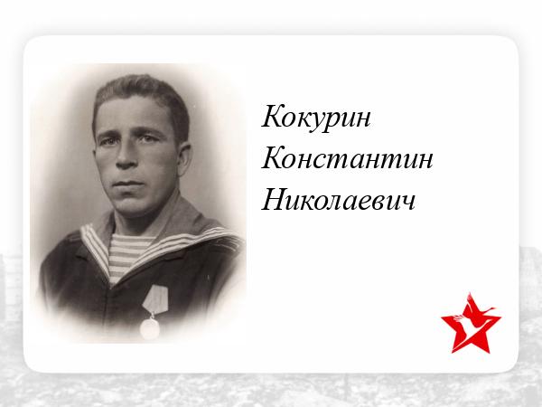 Мой дед, Кокурин Константин Николаевич, участвовал в Финской и в Великой Отечественной войнах. Служил на Балтийском флоте, и был сигнальщиком на минном тральщике. Был награждён медалью "За оборону Ленинграда" и орденом Отечественной войны ll степени.