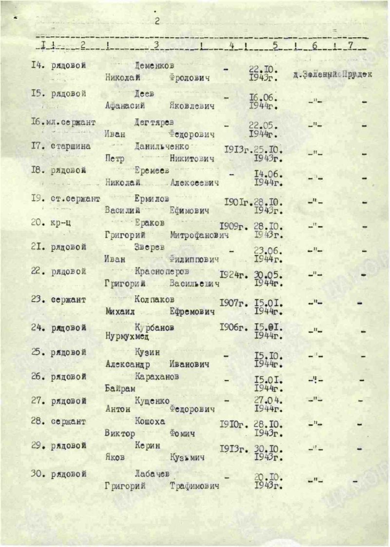 Колпаков Михаил Ефремович, 1922 г. р. Место рождения Красноярский край, Богучанский район, д. Гольтявино. Призван Богучанским РВК в 1940 году. Сержант. Командир отделения. В/ч 597 сп 207 сд., 93 сп 76 сд. Ранен в июне 1943 года, ЭГ 1887 (по справочнику Солдат. ру дислокация Ивановская область). Тяжело ранен в сентябре 1943 года. ЭГ 137,3407 (дислокация Смоленская область). Выбыл из госпиталя в декабре 1943 года. Убит в бою 15.01.1944 года. Похоронен Беларусь. Могилевская область, Чаусский район, д. Зеленый Прудок. В списках похороненных допущена ошибка-1907 г. р. Отец Колпаков Ефрем Ильич.