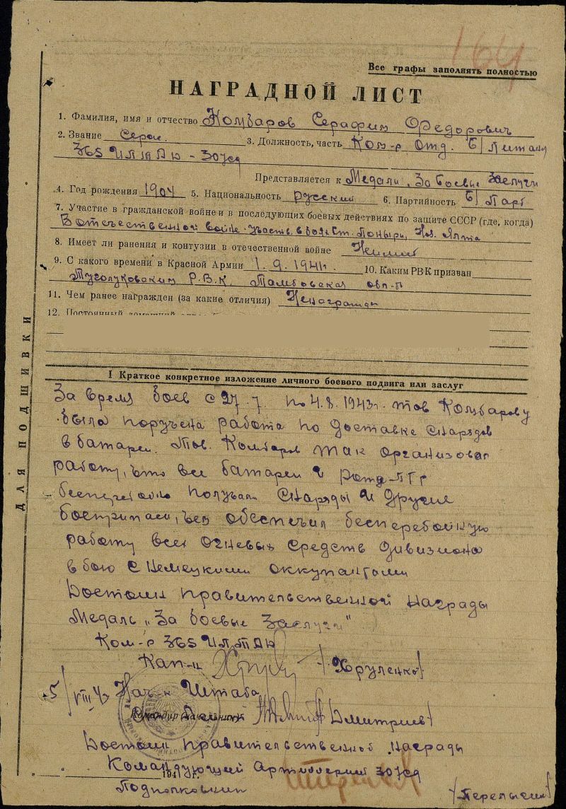 Серафим Федорович мой прадед командир отделения боепитания 365 истребительно-противотанкового артидивизиона 307 стрелковой дивизии Центрального фронта
