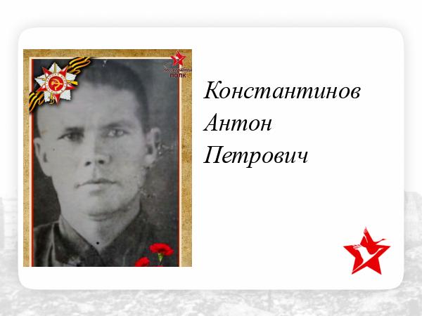 9 Мая, праздник "со слезами на глазах". Нет в России семьи, которой бы не коснулась эта жестокая война. Своего деда, Константинова Антона Петровича, я никогда не видела. Знаю, что была большая семья - три сына, две дочери. До войны дед работал в колхозе, бригадиром. На войну пошел в самом начале, в 1941 году. До мая 1942 года ещё доходили письма, а потом пришло извещение, что пропал без вести. Мы пытались через различные источники хоть что-то найти о нём. И единственный документ, в котором он значится ошибочно, как Андрей Петрович, я обнаружила на сайте Память народа. Все остальные данные совпали. Там была дата, когда он пропал, май 1942. Ему было 37 лет. Бабушка осталась с пятью детьми. Самый старший, Василий Антонович, тоже был призван в армию в конце войны. Остался жив и продолжал службу. Моему отцу, Дмитрию Антоновичу, было в 1941 году 10 лет. Но в тылу трудились все, от мала до велика. Деда и прадеда нашего будем помнить всегда!