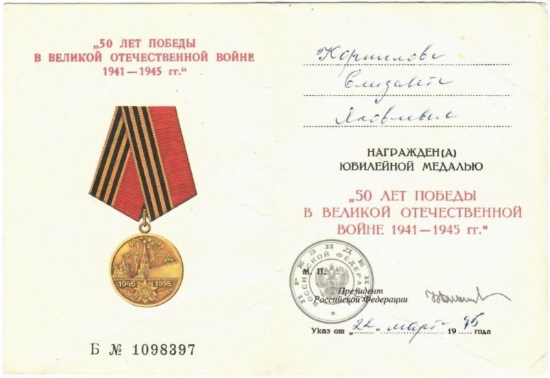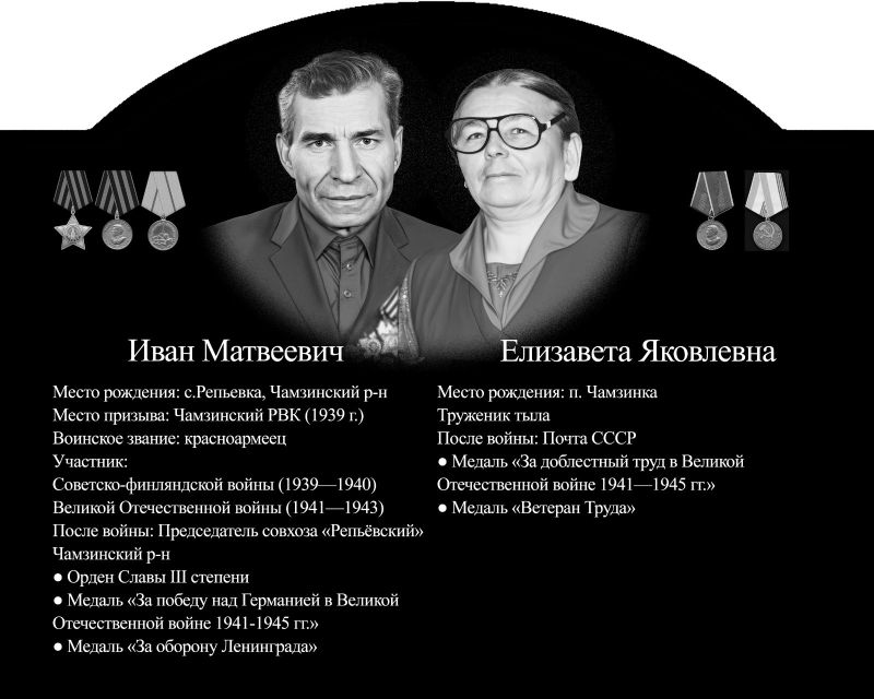 Муж - Корнилов Иван Матвеевич, 13.11.1914 (с.Репьёвка) в браке с 19.03.1952 года (Лизе было 27 л.)