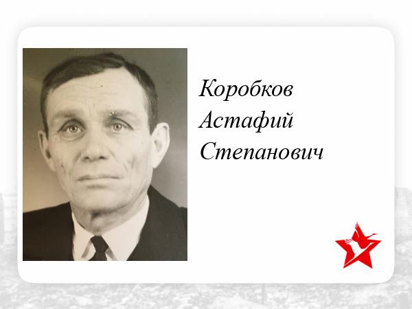 Мой дедушка Коробков Астафий Степанович родился 04 февраля 1924 г. в селе Токаревка Юргамышского района Курганской области, там же закончил начальную школу. Перед войной он работал в колхозе трактористом.