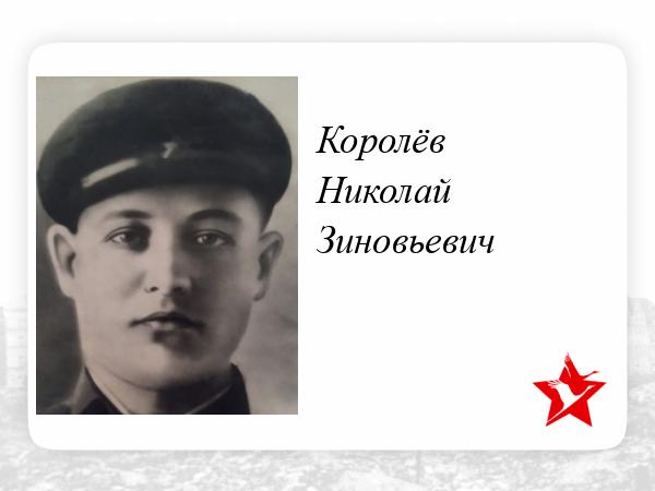 Мой прадедушка по папиной линии родился в 1918 году в городе Бийске. В начале войны в 1941 году Николай Зиновьевич ушёл на фронт в 23 года. В составе Первого Украинского фронта служил связистом и настраивал линии связи между подразделениями. Был захвачен в плен, но смог сбежать от немецких фашистов. После плена восстановился в ряды армии и принимал участие в жестоких боях за освобождение Украинских и Европейских городов, дошёл до Дрездена. На Украине, в городе Краснодон, он познакомился с моей прабабушкой Анной Павловной. После войны он привёз её в свой родной город Бийск, вступил в комсомол и устроился работать на пивоваренный завод, впоследствии ставшим на нем главным инженером.