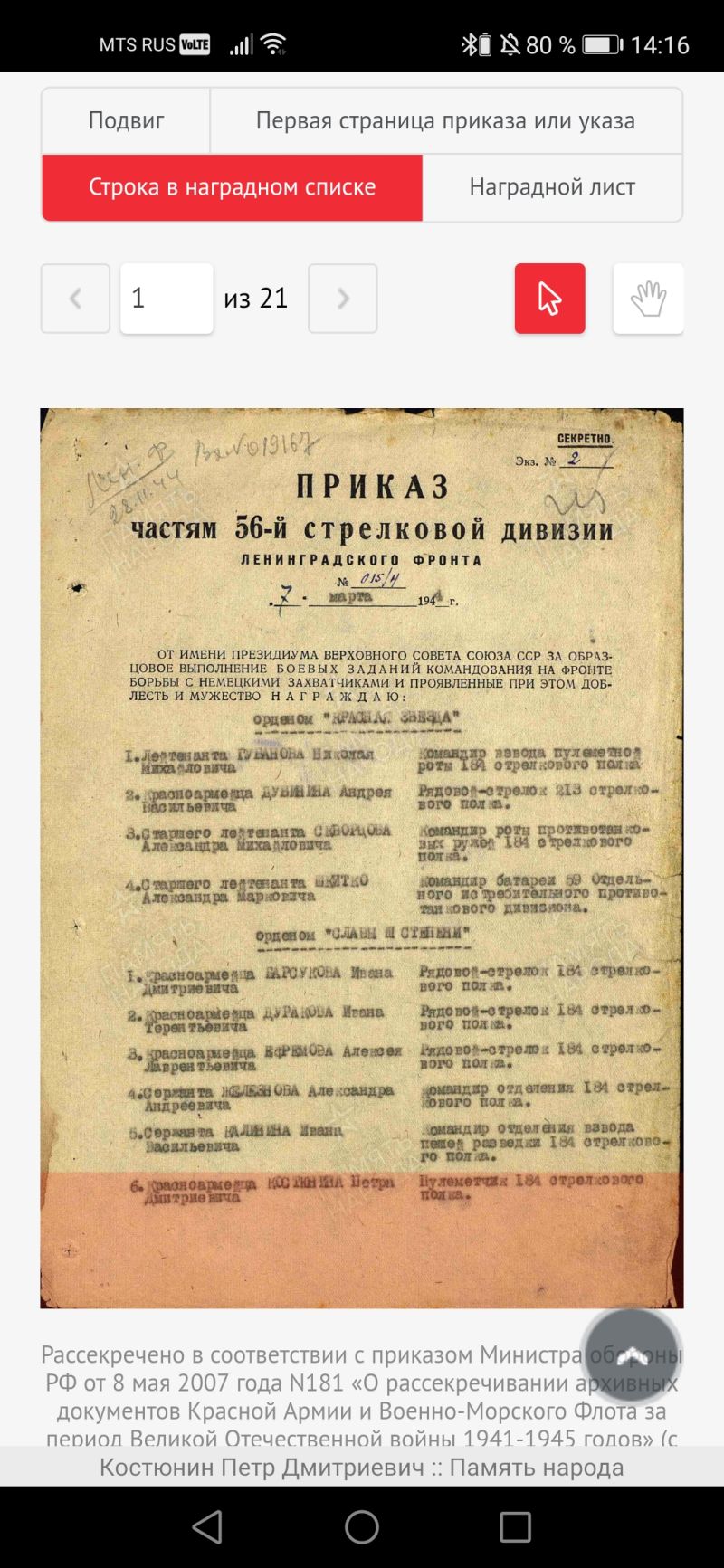 181 Сп, 291 Сд Ленинградского фронта