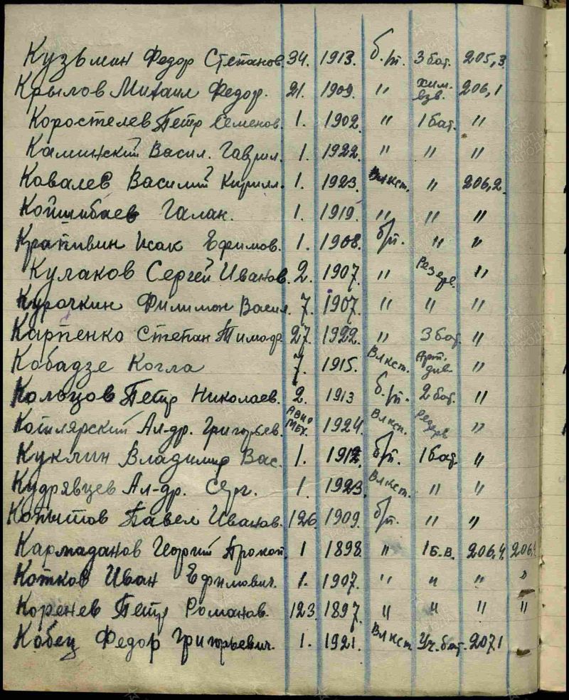 «КОВАЛЕВ Василий Кирилович участвовал в боях Отечественной войны с 2 января 1942 года по 20 февраля 1942 года в должности рядового бойща на Волховском фронте 124 Отд. Бригада 2-я Ударная Армия и на С.З.Ф. в составе 42 стр. полка 180 СД, в боях за станцию Пола тов. КОВАЛЕВ В.К. проявил мужество и геройство первым ворвался на территорию станции Пола, где из автомата уничтожал противника, был ранен немецким снайпером 1 левую грудь. В боях получил два ранения из них одно тяжелое. Достоен Правительственной награды - ордена "КРАСНОЙ ЗВЕЗДЫ" »