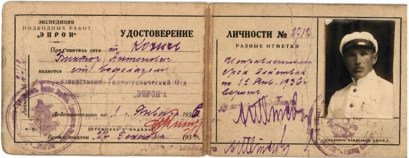 Виктор Антонович был подводником, до войны работал в ЭПРОНе инструктором водолазных работ.