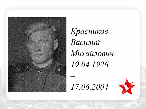 Красников Василий Михайлович 19.04.1926 – 17.06.2004 Призван в армию в ноябре 1943 г.