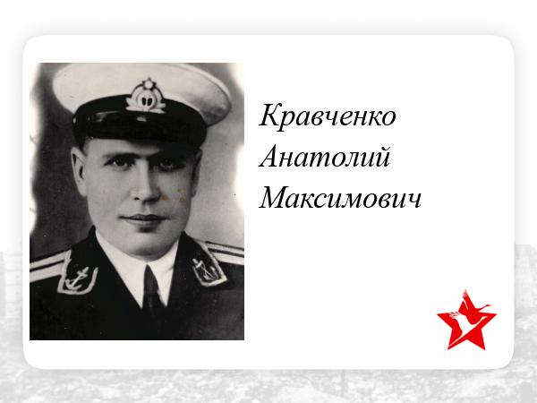 Мой папа Кравченко Анатолий Максимович родился в Кировоградской области. В семье было пятеро братьев, он был самым младшим. Их отец умер еще в 1915г., мать в 1924, дети познали бедность и голод в самые тяжелые годы для страны годы...Во время страшного голода 1932 - 1933 годов папа, чтобы спастись, вынужден был пойти на работу в совхоз, где он пас лошадей и ухаживал за ними, а питался тем же, что и давал лошадям - макухой. Потом, после голода, ушел на строительство Днепрогэса, а с 1936г. был призван на службу на Черноморский флот. Войну он встретил гвардии младшим сержантом, участвовал в героической защите Севастополя. Был дважды ранен и по ранению был отправлен на транспорте на лечение. К счастью, судно успешно смогло пройти до порта назначения, избежав потопления под бомбежкой. Отец попал в госпиталь сначала в Сочи, потом в Тбилиси. Медработники, которые их принимали, говорили, что таких истощенных, грязных, измученных раненых они еще не видели...По выздоровлении папа участвовал в защите Туапсе, а после вернулся для дальнейшего прохождения службы в Севастополь. Там в 1946г. родился мой брат Евгений, я родилась в г. Новороссийске. Служить приходилось папе и в Одессе, и в Туапсе, и в Поти...Демобилизовался он в 1957г. уже гвардии мл. лейтенантом (закончил школу офицеров). И всю жизнь сожалел, что не может вернуться на службу!