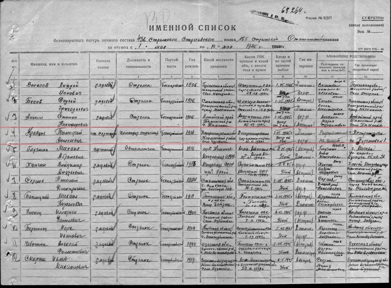 Мой дядя (муж сестры отца), Кравцов Тимофей Аникеевич, рабочий, б/п, русский, родился в 1914 г.