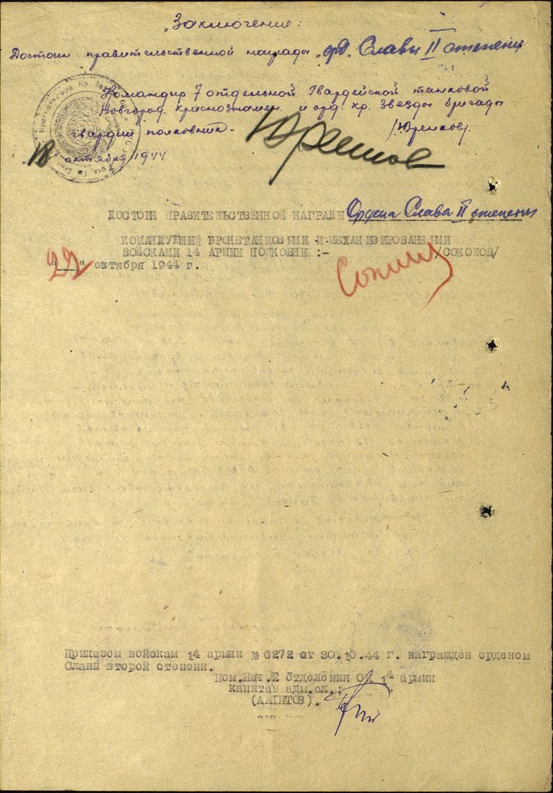 Командир башни,заряжающий танка Т-34 №101, командира 1 танкового батальона гв.майора Платицына В.В.