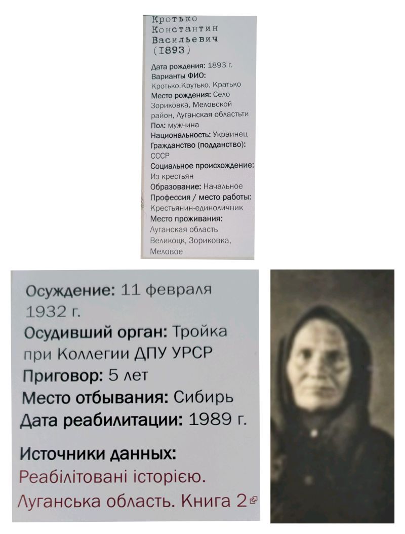 Кротько Иван Константинович родился в Великоцке. Его родителей раскулачили. Отца Кротько Константина Васильевича с сыном Василием Константиновичем выслали, в ссылке Константин Васильевич умер (позже был реабилитирован). Кротько Анну Орестовну тоже выслали.