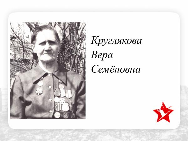 Родилась Вера Семеновна Круглякова 13 сентября 1923 года в поселке Ранцево. Так уж сложилось, что совместная жизнь ее родителей не удалась: они расстались. Отец, Семен Тимофеевич, уехал в Ленинград и забрал с собой четырех дочерей. Там он вскоре вновь женился, и его жена, Мария Ивановна, полюбила девочек всей душой. Жизнь в городе на Неве Вере очень нравилась. А как же иначе: это — самый прекрасный город такой великой страны! Вера, как и многие ее сверстницы, была пионеркой, комсомолкой. Страстно любила кино. Пришла пора – она влюбилась. Причем влюбилась в простого, даже не городского парня.