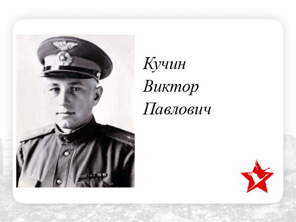 Кучин Виктор Павлович, родился в поселке Джусалы Северного Казахстана в 1924 г. Родителей потерял рано, воспитывался дедушкой и бабушкой. В 1943 году окончил летную школу в Барнауле, затем летал на По-2 в учебно - тренировочном отряде. В январе 1945 года был направлен в 21-ю Гвардейскую Авиационную транспортную дивизию, где был зачислен вторым пилотом в 1-ю авиаэскадрилью 49-го ГАТП.