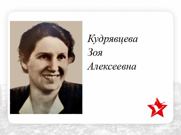 Ленинградка, была в эвакуации. Работала в эвакуации, потом вернулась в Лениград. Ее мать (моя прабабушка), Никитина (Орлова в девичестве, по первому мужу Кудрявцева) Екатерина Васильевна, умерла в блокаду от голода в первую блокадную зиму, не дождавшись любимую дочку, внучку и зятя.