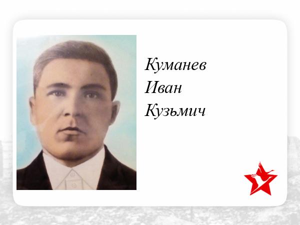 Куманёв Иван Кузьмич уроженец села Андреевка, Большеигнатовского района. Призван в ряды Красной Армии 10 сентября 1941 года в звании рядовой. Был награждён орденом «Красной звезды», медалью «За отвагу», был представлен к ордену « Боевой славы 3 степени». Дважды легко ранен в марте 1942 года и в сентябре 1943 года на западном фронте. В наступательных операциях полка 23 июня 1944 года при прорыве обороны противника на реке Проня и при освобождении городов Могилёв и Гродно действовал исключительно мужественно и решительно. В числе первых форсировал реку Проня. В боях за город Могилёв уничтожил станковый пулемёт противника и обходным путём взял в плен двадцать восемь немецких солдат.