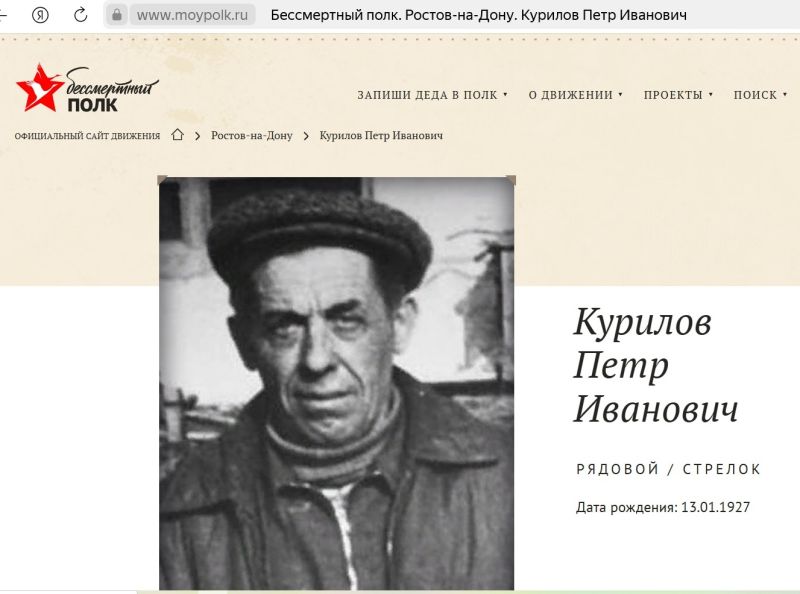 Курилов Петр Иванович родился 13 января 1927 года в городе Ростов-на-Дону.