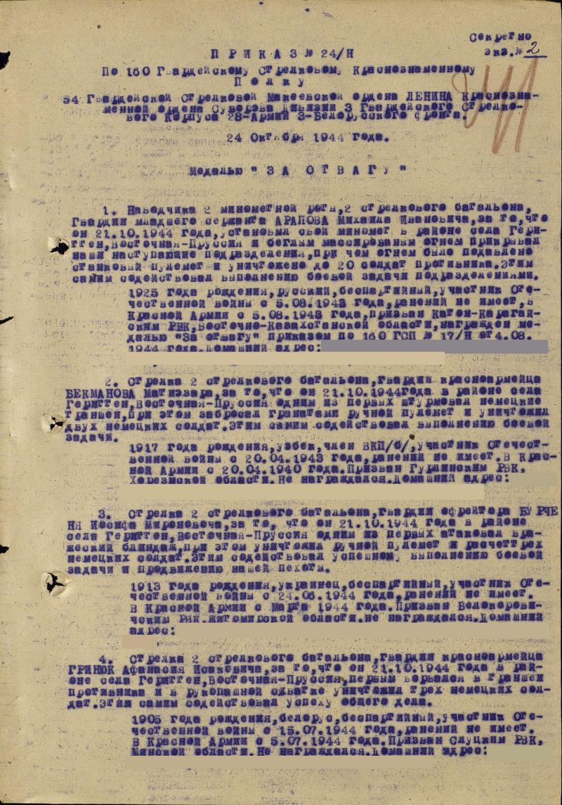 160 Гвардейский Стрелковый Краснознамённый полк, 54Гвардейская Стрелковая Макеевская ордена Ленина Краснознамённой ордена Суворова дивизия, 3 Гвардейский Стрелковый корпус, 28-Армия, 3 Белорусский фронт.