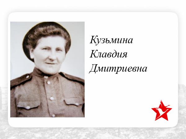 С 1943 по 1945 г.служила санитаркой: выносила раненых с поля боя, ухаживала за ними, стирала одежду.