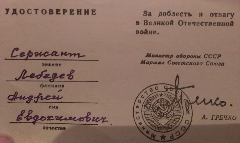 Мой дед родился в Республике Бурятия Кабанский район с. Тресково 13.09.1912 года. В суровые годы войны честно выполнял свой патриотический долг - достойно нес службу в доблесных войсках Первого Украиского фронта. На фронте получил ранения левого глаза. Вернувшись с войны рабтал в Совхозе "Шергино" рабочим. 01.10.1987 года дедушка умер.
