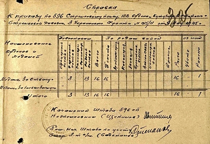 596 стрелковый полк 122 стрелковой дивизии 3 украинский фронт