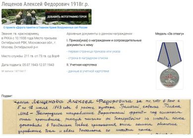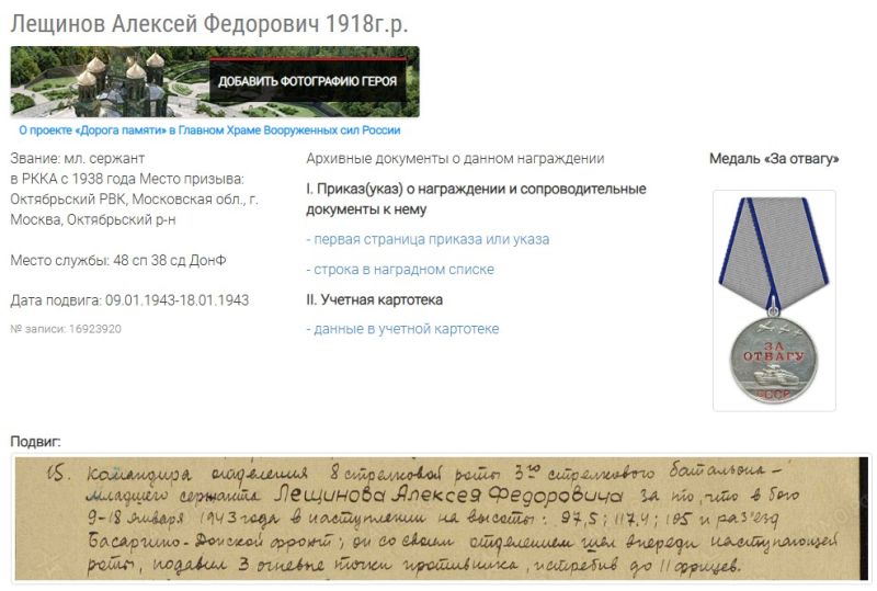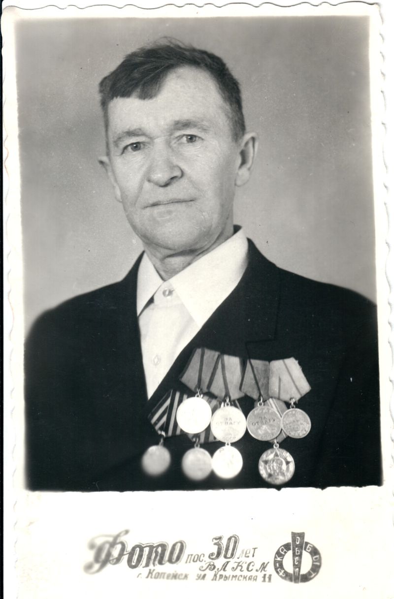 Родился в 1918 году в Смоленской области. Служить в Красной Армии начал ещё в октябре 1938 года, участник советско-финской войны. К сожалению, его воинский путь до начала Великой Отечественной Войны неизвестен. Служил в разных стрелковых, артиллерийских, десантных подразделениях. Дослужился до звания гвардии лейтенанта, особенно отличился в 1943 году. В январе, воюя на Донском фронте, за подвиг в районе Басаргино (шёл впереди наступающей роты, подвил 3 огневые точки противника) был удостоен медалью «За отвагу». Удостоен также медали «За оборону Сталинграда». 2 медаль «За отвагу» получил летом 1943 года после боёв за хутор Гремячий на Воронежском фронте (из штаба полка, рискуя жизнью, под сильным огнём противника бесперебойно доставлял в батальон боевые приказания, обеспечив тем самым управление боем). В 1944 году попал в плен, смог вернуться целым и невредимым, но после войны из-за пленения не мог устроится на работу, поэтому вынужден был уехать из Москвы в г. Копейск, где устроился на работу и долго и счастливо жил. Многодетный отец. Скончался 3 августа 1995 г. в г. Копейск.