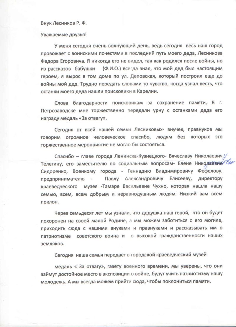 в 2012 году останки Федора Егоровича были перезахоронены в Ленинске-Кузнецком на Нижегородском кладбище.