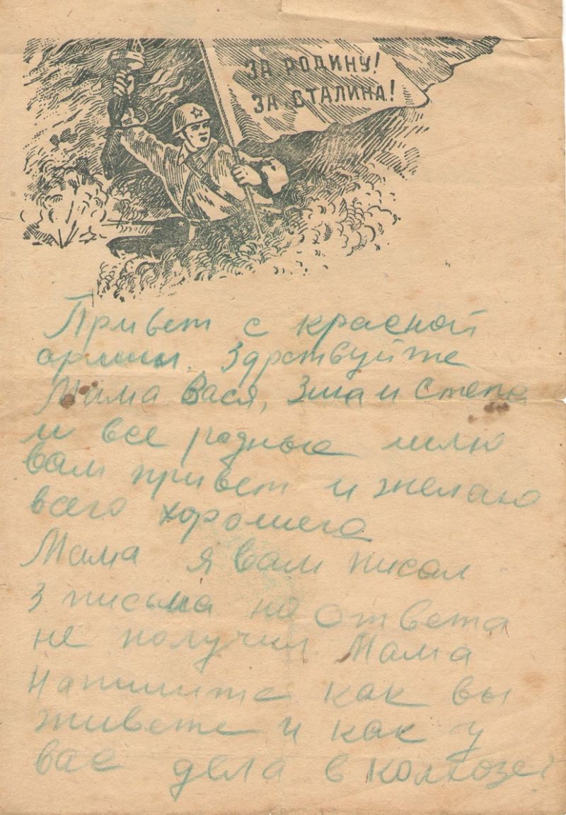 На фронте Николай был ранен, лежал в госпитале, затем снова воевал. 2 февраля 1944 года он проходил с частью мимо Вруды, но на месте дома увидел воронку, ночевал в Тресковицкой школе, о чем написал затем в письме матери.