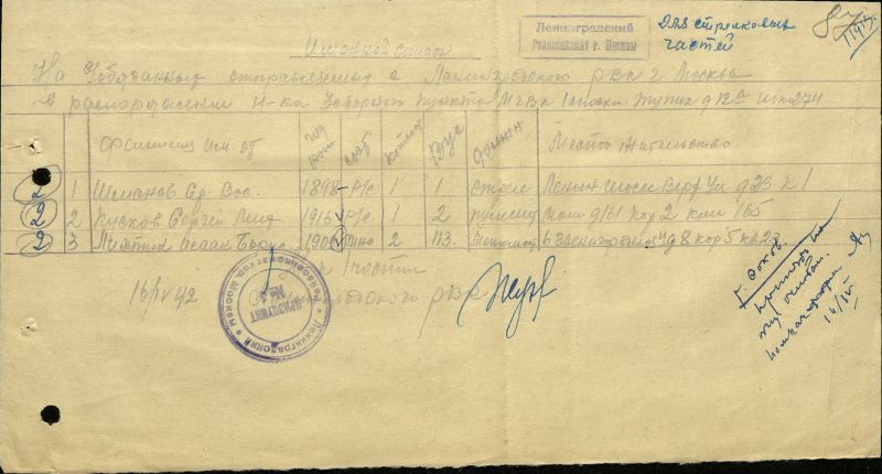 Последнее место службы: 1050 стрелковый полк , 301 Стрелковая Сталинская Дивизия.