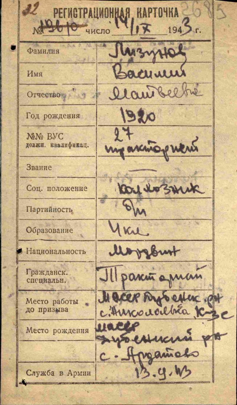 Откуда прибыл: Дубенский РВК, Мордовская АССР