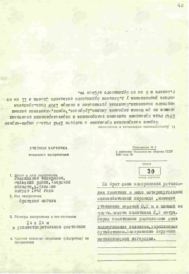 Павших воинов похоронили в деревне Княже (Княжье, Князево) Бельского района Смоленской (ныне Тверской) области.