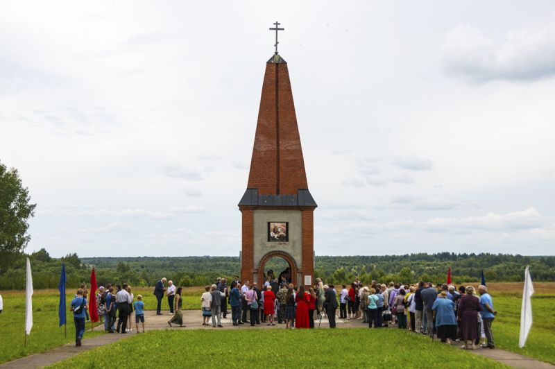 - Часовню-обелиск высотой 12,5 м (каждый метр высоты - это 1000 жизней) с иконой Георгия Победоносца из сибирских самоцветов.