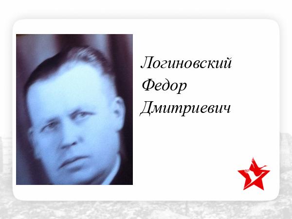 Логиновский Федор Дмитриевич, - потомственный военный, родился в Кронштадте в 1913 году, на войну ушел уже мужчиной. Каждый раз, смотря фильм «в бой идут одни старики» я вспоминаю моего «деда Федю»: почти 100% сходство с механиком Макарычем (который крестил самолеты перед вылетом). Федор Дмитриевич, по кличке «моряк» (потому что из Кронштадта), начал свой фронтовой путь техником, закончил инженером эскадрильи. И в военное и (особенно) в мирное время гордился тем, что ни один из его самолетов не был сбит по причине неисправности. Был участником прорыва блокады Ленинграда, не однократно представлялся к награде. Для деда Война закончилась дважды – сначала 9 мая, а потом - после освобождения стран соцлагеря. Многое он повидал и после 9 мая: события в Венгрии, Польше.