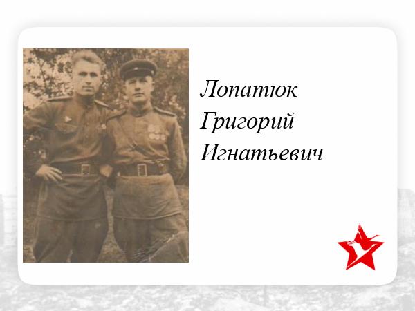 Лопатюк Григорий Игнатьевич (на фото справа, в фуражке, с медалями)