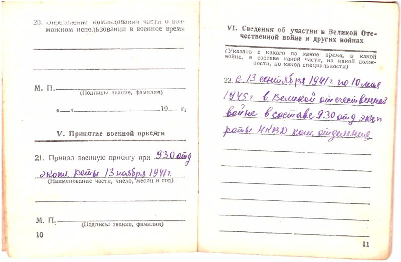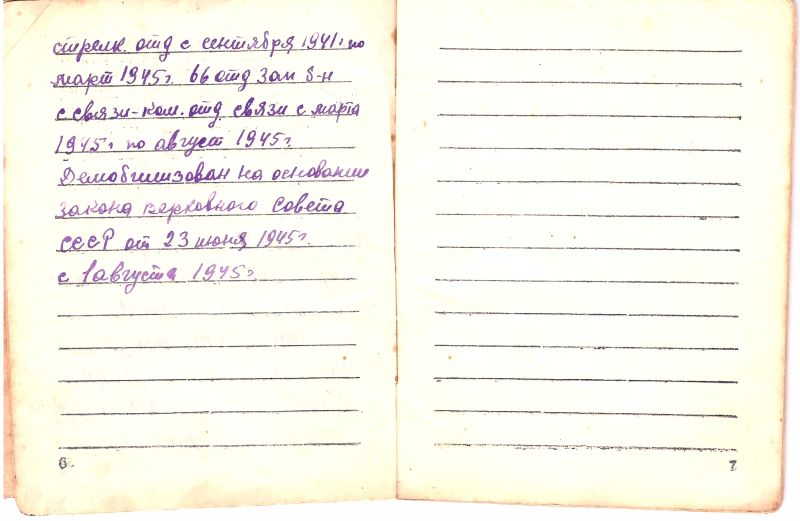 Период участия в ВОВ: 13.09.1941 - 10.09.1945