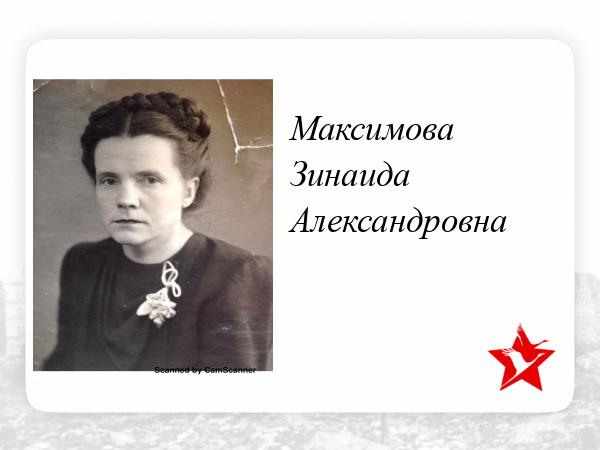Зинаида Александровна Максимова (Иванова) моя прабабушка по маме.Она работала в подполье на Ораниембаумском плацдарме.